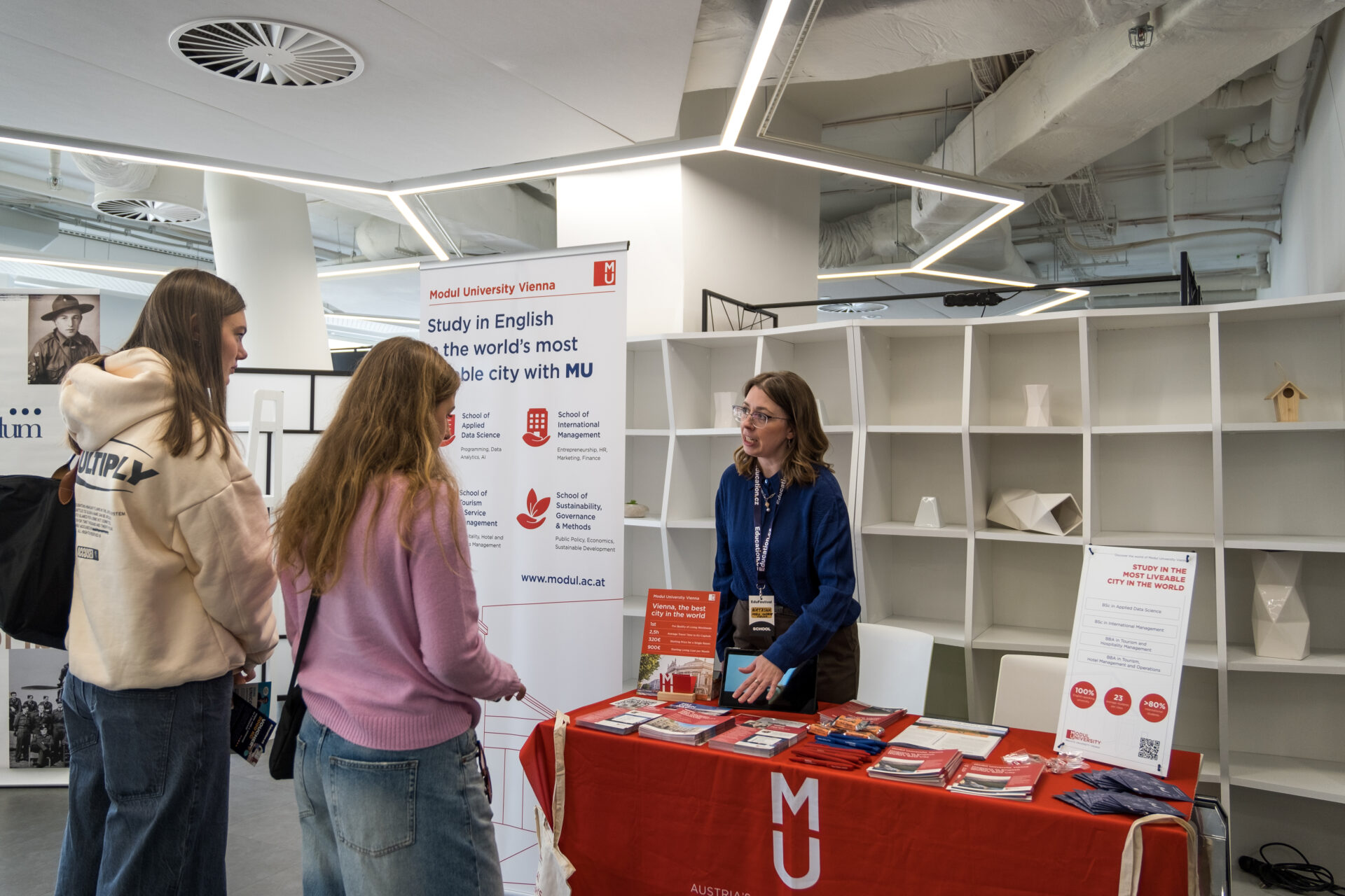 Během dne bylo v Praze navíc možné zavítat také ke stánkům zahraničních vysokých škol. Přijeli zástupci EU Business School, Webster University, Unicorn University, Modul University Vienna, SRH Universities a Coventry University. Na EduFestivalu v Bratislavě se pak zájemců o vysokoškolské studium v zahraničí ujali naši odborníci na zahraniční univerzity.