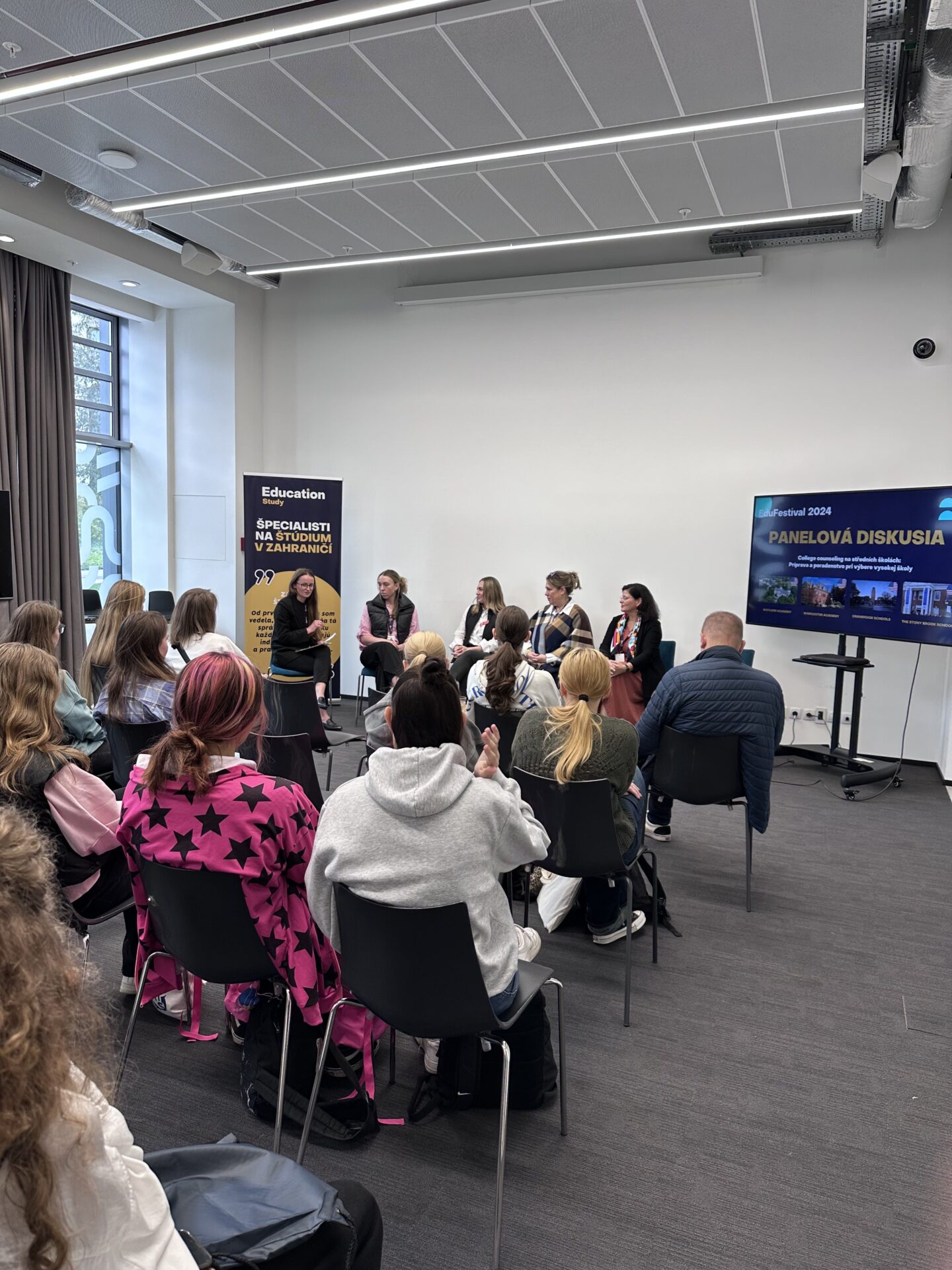 V Bratislavě si zájemci o přednášky o studiu v zahraničí také přišli na své, proběhly tam 4 poutavé panelové diskuze se zástupci internátních středních škol ze zahraničí.